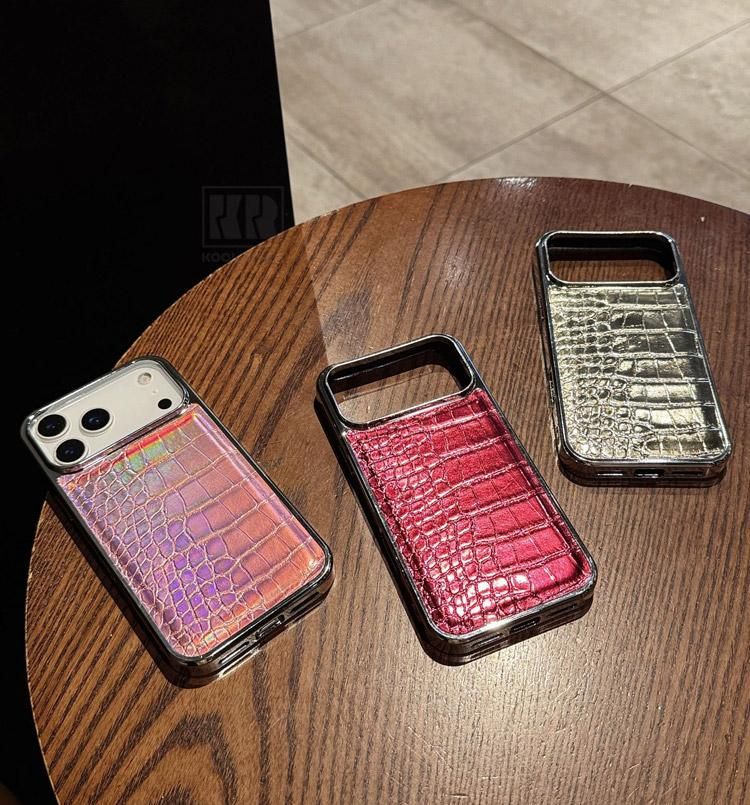 iPhone17 ケース Air/17 Pro/17 Pro Max 耐衝撃 カバー メッキ クロコダイル調 PUレザー 色彩効果 シンプル Apple アイフォン17