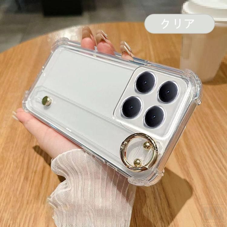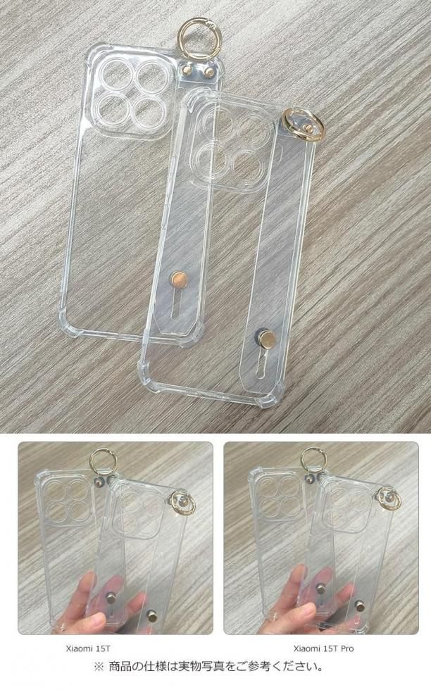 Xiaomi 15T ケース クリア 15T Pro 耐衝撃 カバー クリア 透明 メッキ TPU ソフトケース 落下防止ベルト スマホベルト 片手操作 取っ手 ホリング付き