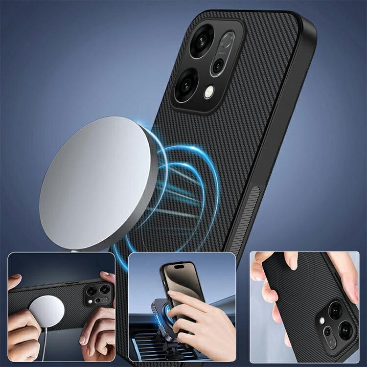 OPPO A5 5G ケース 耐衝撃カバー カーボン調 Qi充電 ワイヤレス充電 対応 マグネット式車載ホルダー対応 TPU+プラスチック ハードケース 滑り止め