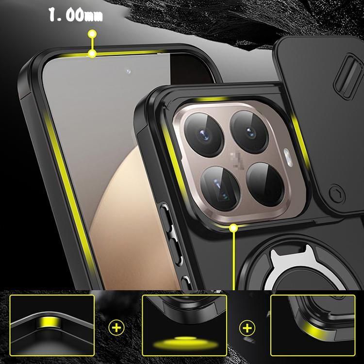 Xiaomi 15T ケース 15T Pro 耐衝撃 カバー マグネット式車載ホルダ対応 スライド式カメラレンズカバー付き レンズ保護 スタンド機能 リング付き
