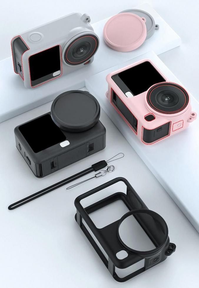dji osmo action 6 ケース シリコンケース + レンズ保護 耐衝撃 カバー シリコンカバー ストラップ付き カメラレンズカバー