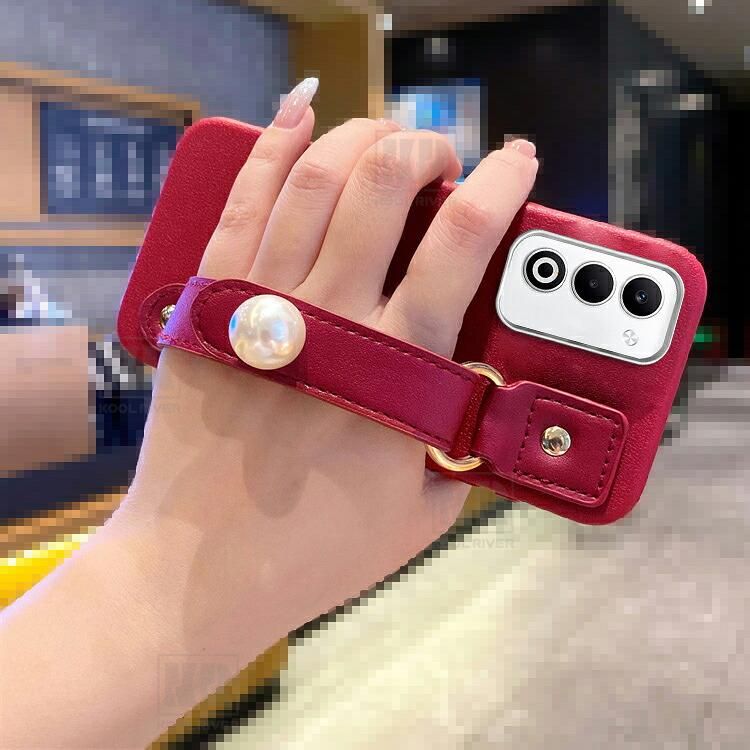 OPPO A5 5G ケース 耐衝撃 カバー PUレザー調 持ち手 ベルト 落下防止ベルト 真珠風 片手操作 取っ手 かわいい エレガント レディース