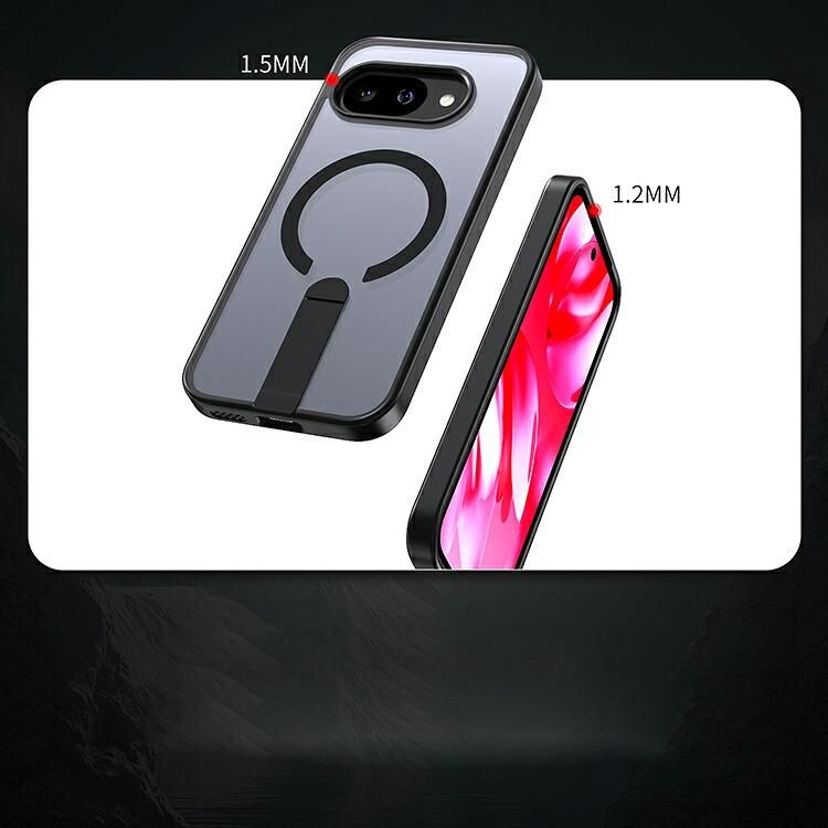 Pixel10a ケース クリア 耐衝撃 カバー Qi充電 ワイヤレス充電対応 マグネット式車載ホルダー対応 スタンド機能 ストラップホール付き
