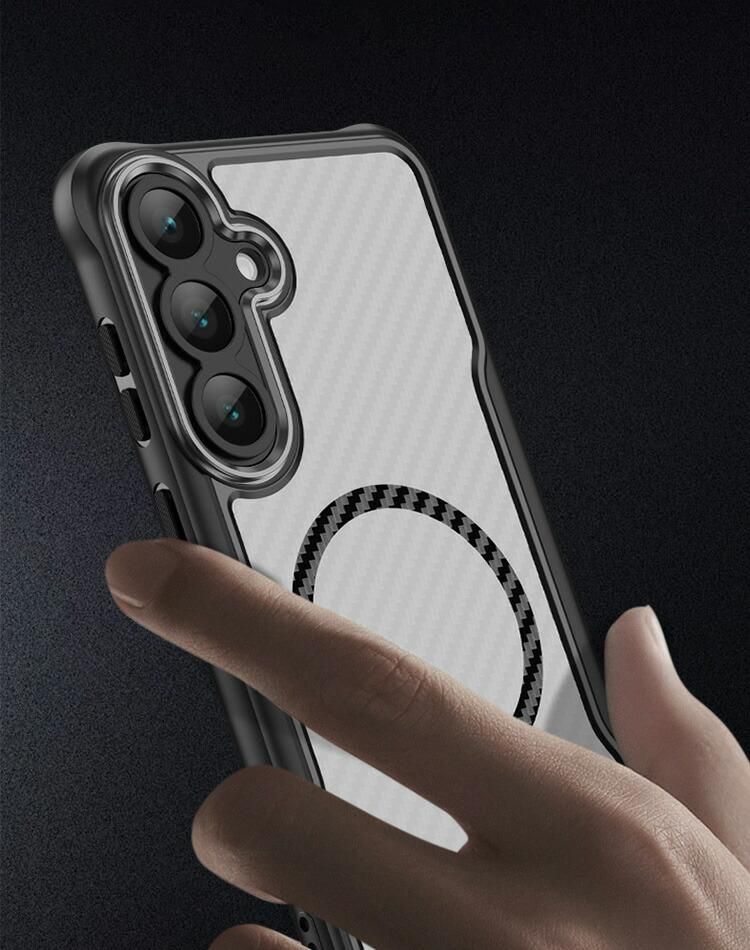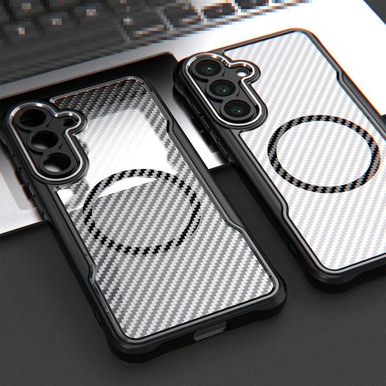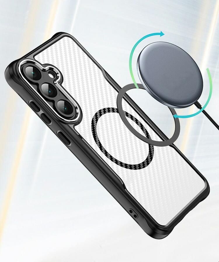 Galaxy S26 ケース クリア S26+/S26 Ultraカバー 耐衝撃 カーボン調 背面半透明 マット Qi充電 ワイヤレス充電対応 ストラップ穴