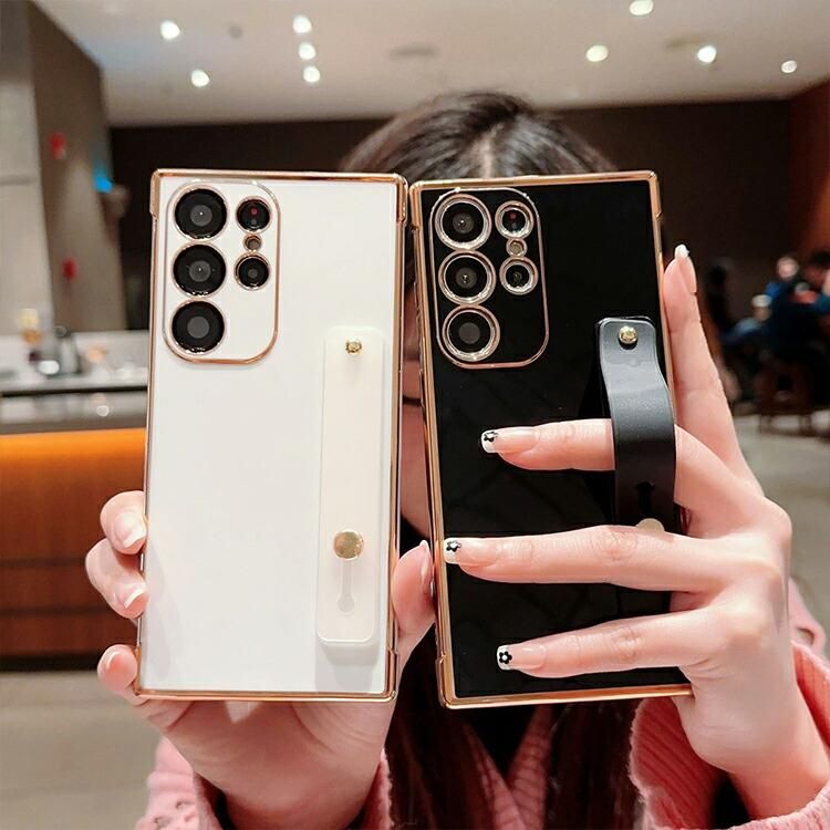 Galaxy S26 ケース 耐衝撃 カバーメッキ TPU ソフト ケース 持ち手 ベルト 落下防止ベルト スマホベルト 片手操作 取っ手 スタンド機能