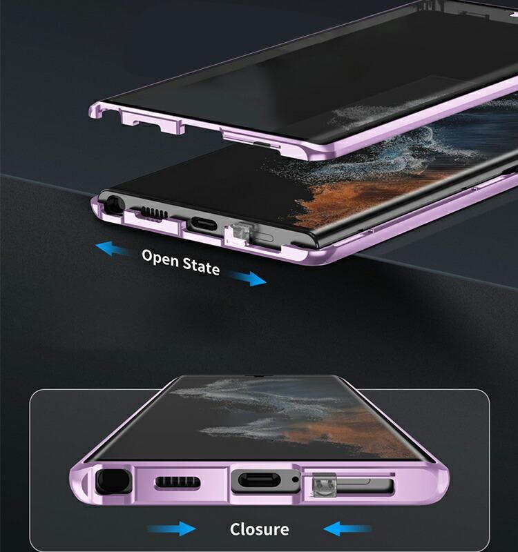 Galaxy S26 ケース アルミ バンパー S26+ S26 Ultra カバー 前後強化ガラス かっこいい アルミバンパー クリア 透明 両面 カメラ保護 マグネット固定 全面保護 Samsung サムスン ギャラクシー S26/S26 プラス/S26 ウルトラ アンドロイド おすすめ