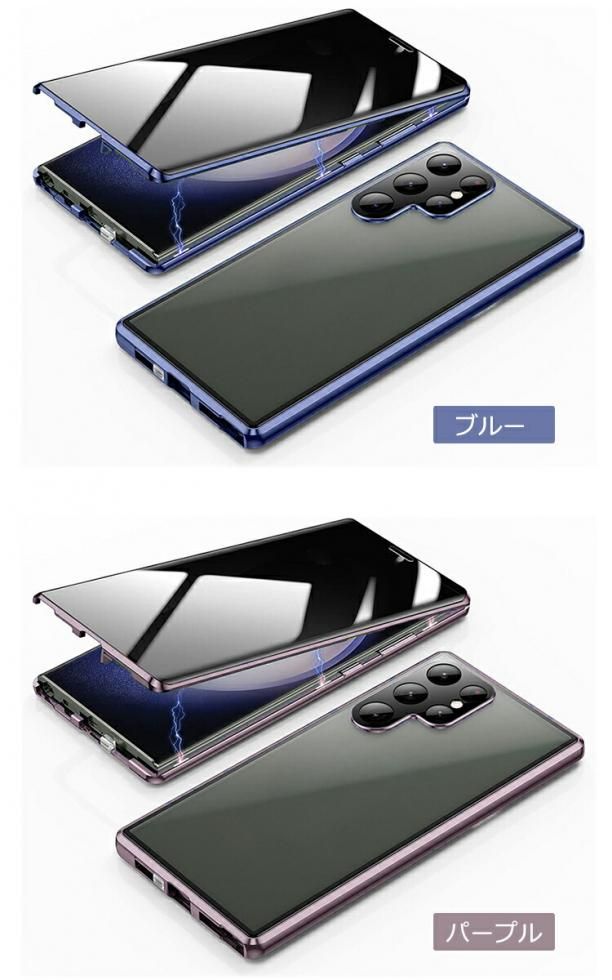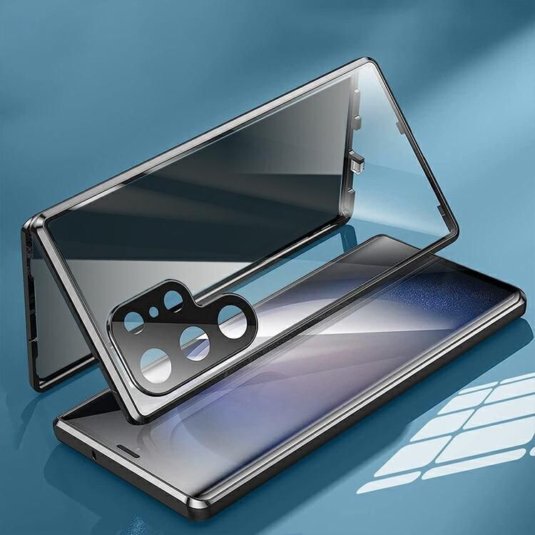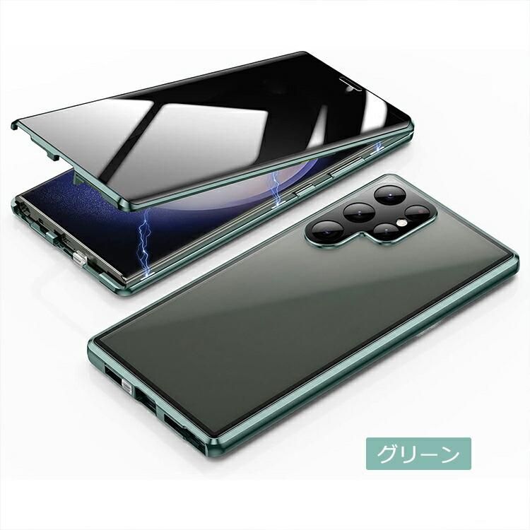 Galaxy S26 ケース アルミ バンパー S26+ S26 Ultra カバー 前後強化ガラス 覗き見防止 両面 カメラ保護 マグネット固定 全面保護