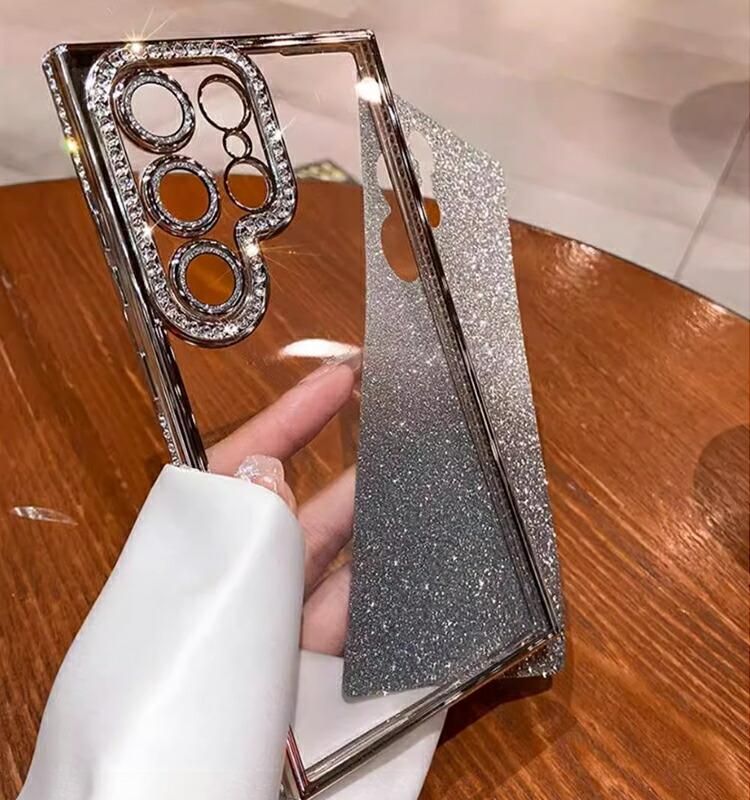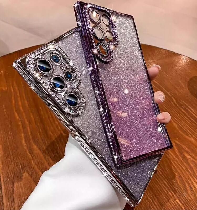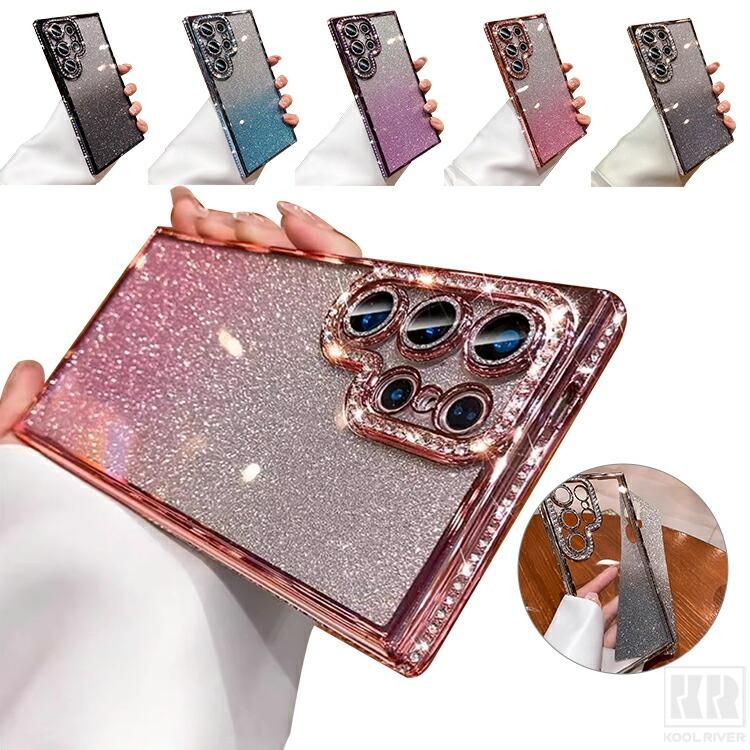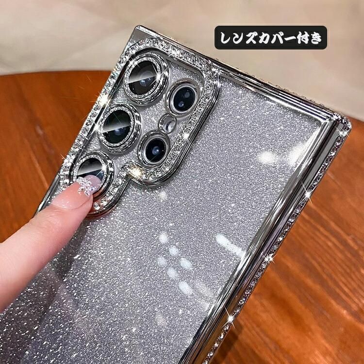 Galaxy S26 ケース クリア カバー 耐衝撃 レンズカバー付き ラインストーン メッキ ソフトケース グラデーション グリッター きらきら