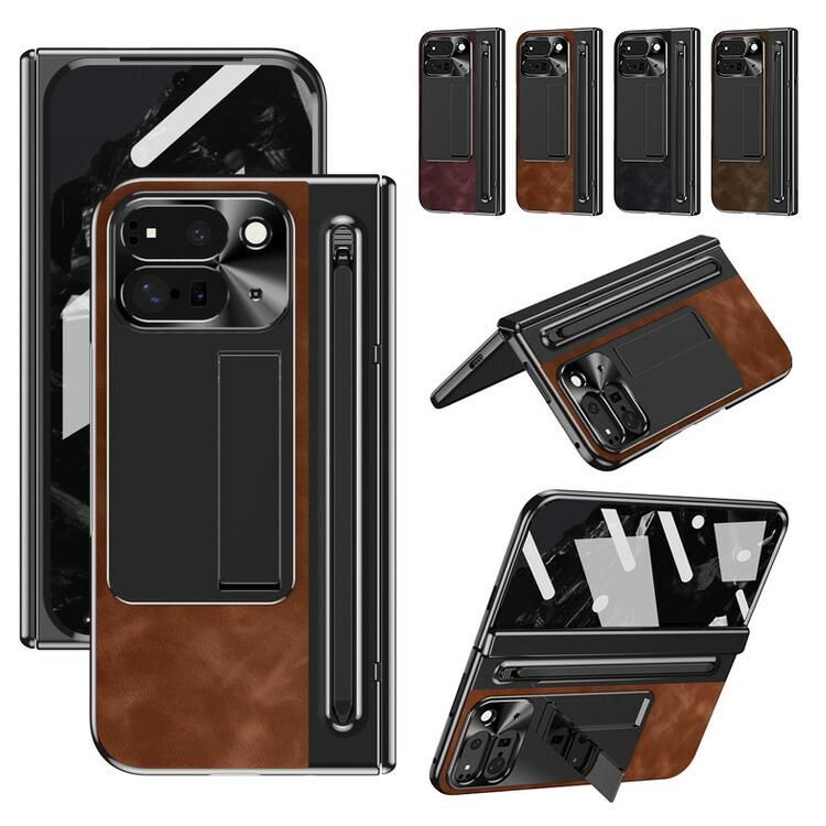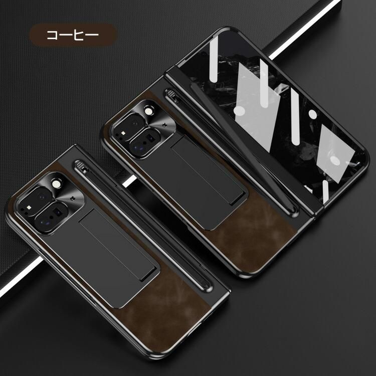 Pixel 10 Pro Fold ケース 耐衝撃 カバー ペン収納 タッチペン付き タッチペン付き スタンド機能 強化ガラス+PUレザー+プラスチック 前面強化ガラス