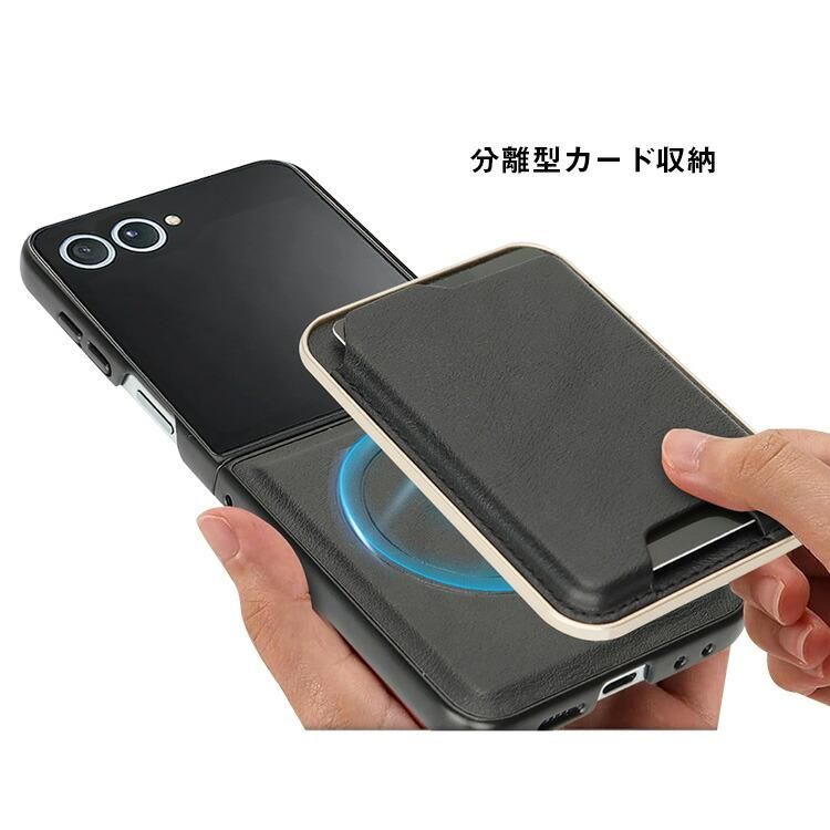 Galaxy Z Flip7 ケース 折りたたみ型 PUレザー ケース 分離型カード収納 ストラップ穴 Samsung サムスン ギャラクシー Z フリップ7