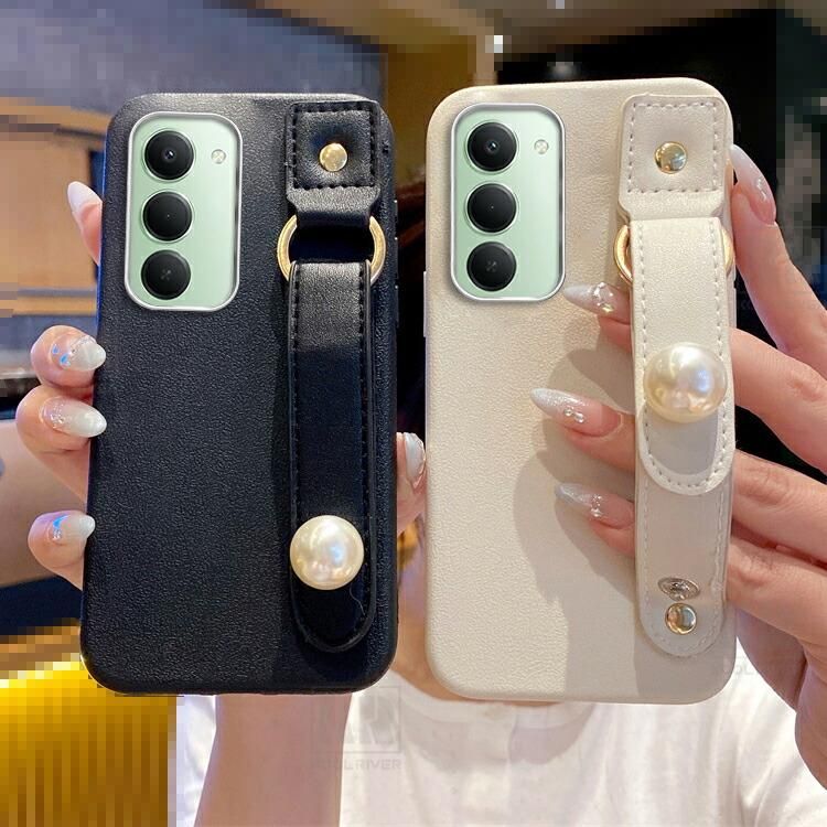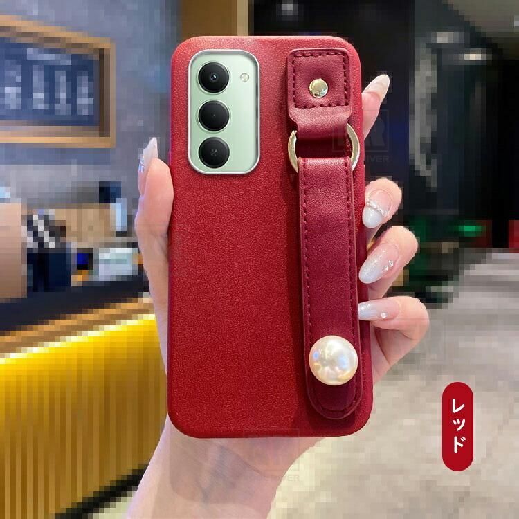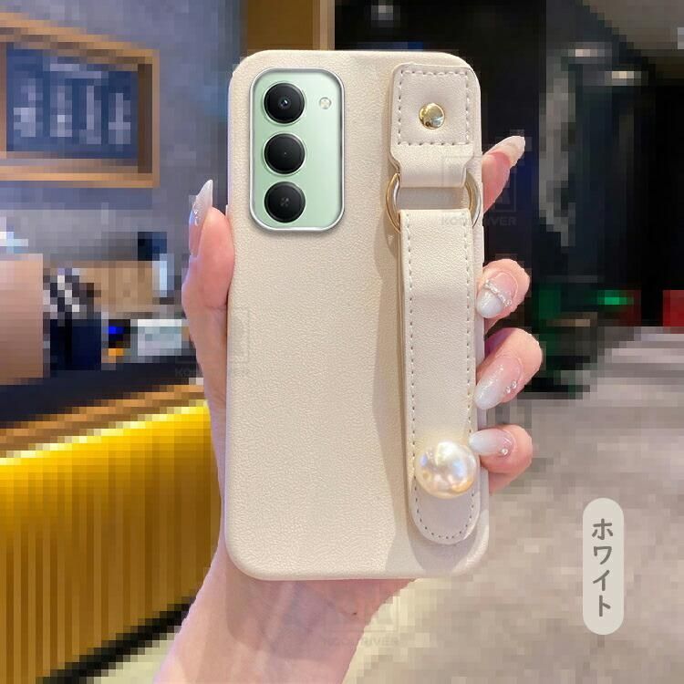 Redmi 15 5G ケース 耐衝撃 カバー PUレザー 持ち手 ベルト 落下防止ベルト 真珠風 片手操作 取っ手 かわいい エレガント