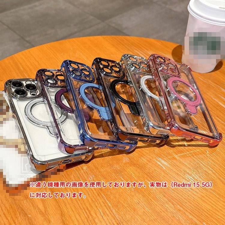 Redmi 15 5G 耐衝撃 クリア ケース カバー カメラ保護あり メッキ 透明 TPU ソフトケース スマホリング付き 角 保護 コーナーバンパー 小米