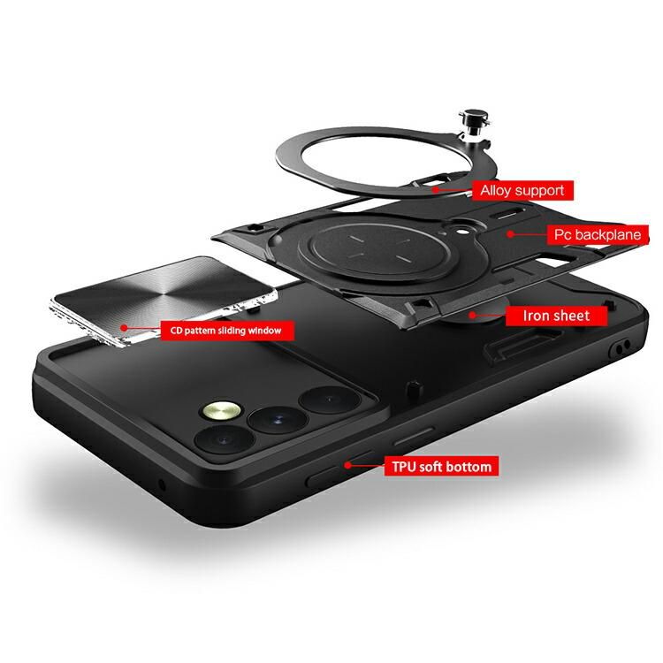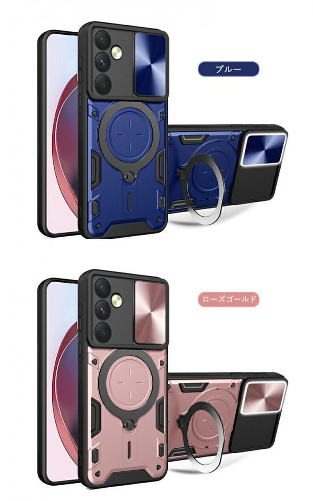 Galaxy A37/57 5G ケース 耐衝撃 カバー スライド式カメラレンズカバー付き レンズ保護リング付き スタンド機能 マグネット式車載ホルダー対応