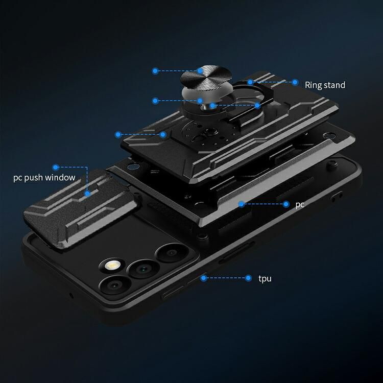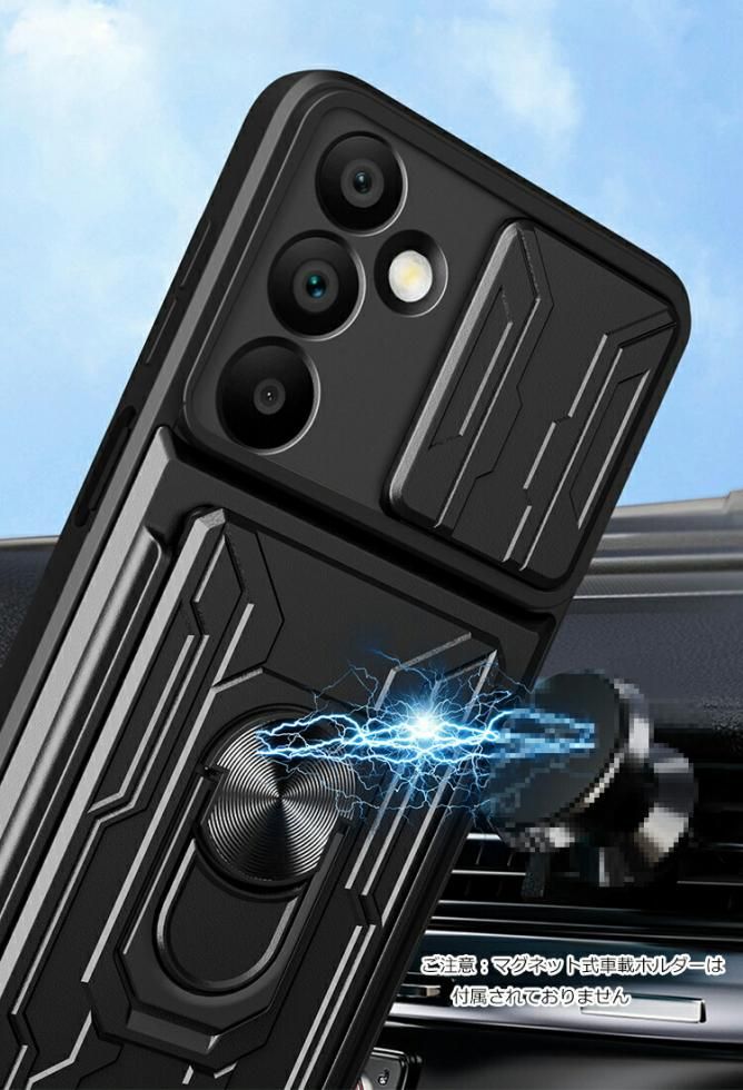 Galaxy A37/57 5G ケース 耐衝撃 カバー スライド式カメラレンズカバー付き レンズ保護 リング付き スタンド機能 マグネット式車載ホルダー対応