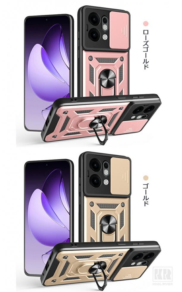 OPPO Find X9 ケース X9 Pro カバー 耐衝撃 スライド式カメラレンズカバー付き レンズ保護 一体型リング付き スタンド機能 マグネット式車載ホルダー対応