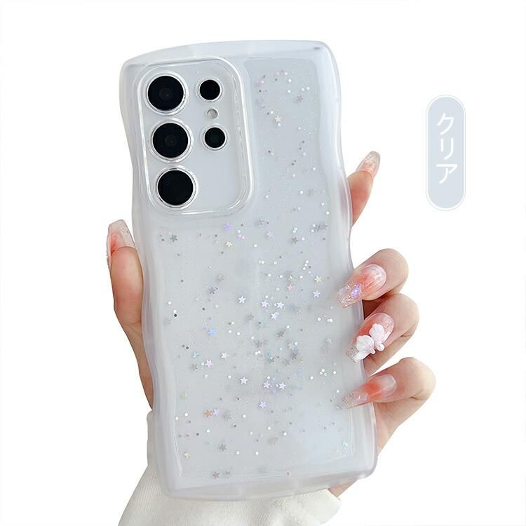 Galaxy S26 ケース クリア ウェーブ 波型 なみなみ カバー クリア 透明 耐衝撃 波状 TPU ソフト ケース グリッター きらきら シンプル S26+/S26 Ultra Samsung サムスン ギャラクシー S26/S26 プラス/S26 ウルトラ おすすめ おしゃれ 可愛い お洒落