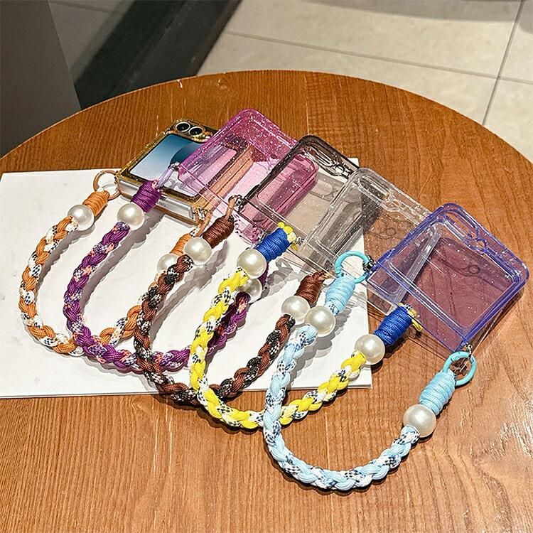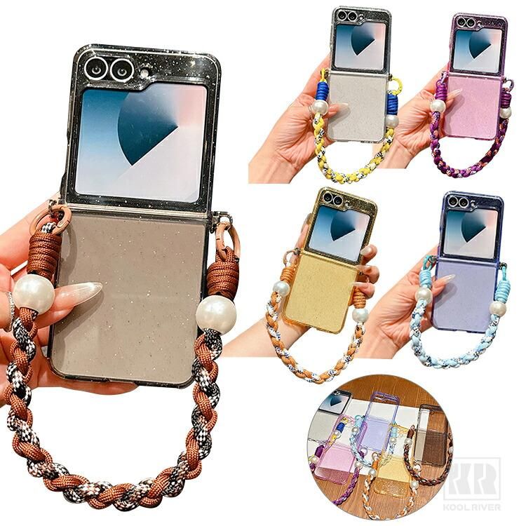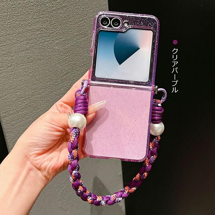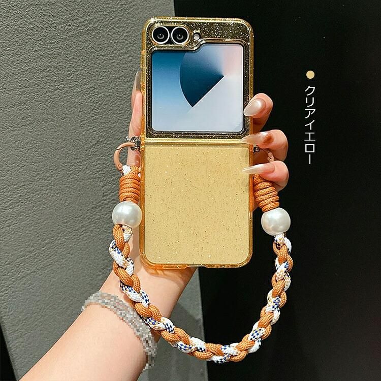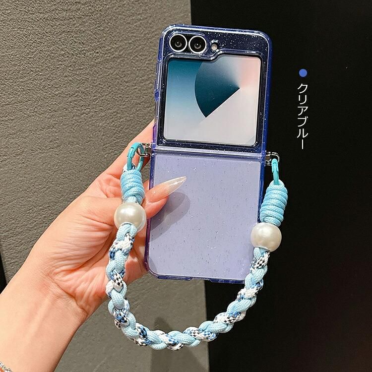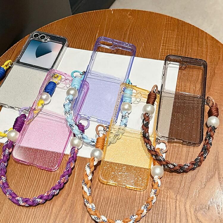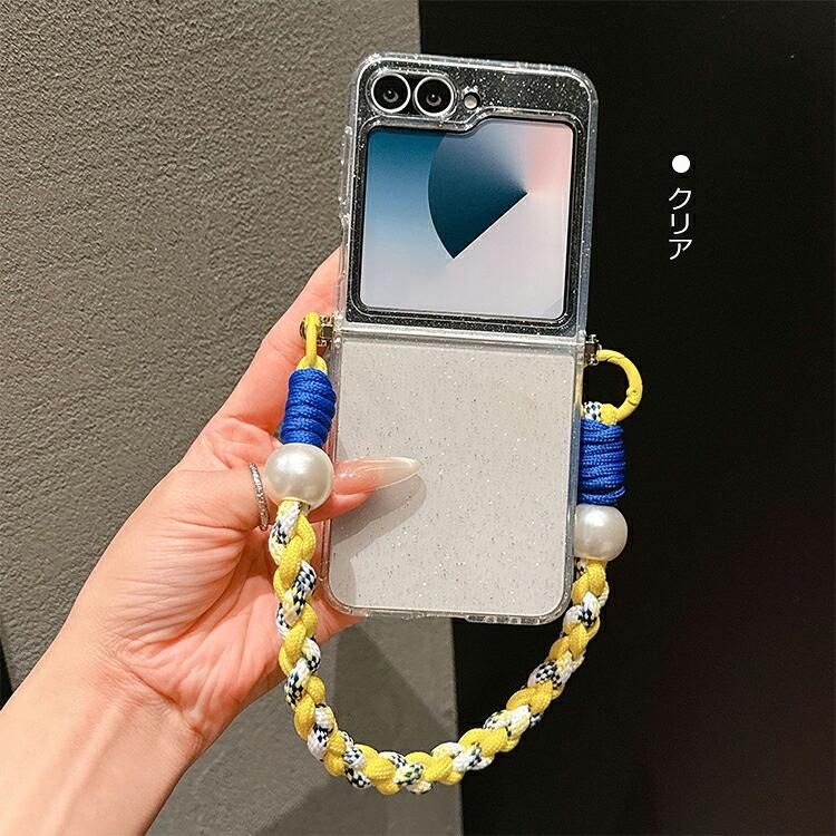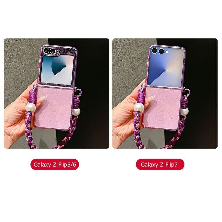 Galaxy Z Flip7/ Z Flip6/Z Flip5 クリア ケース /カバー 折りたたみ型 耐衝撃 クリア 透明 持ち手 ベルト ハンドストラップ 落下防止ベルト TPU ソフトケース インスタ映え 煌めき 可愛い キラキラ お洒落 Samsung サムスン ギャラクシー Z フリップ7/6/5 保護ケース