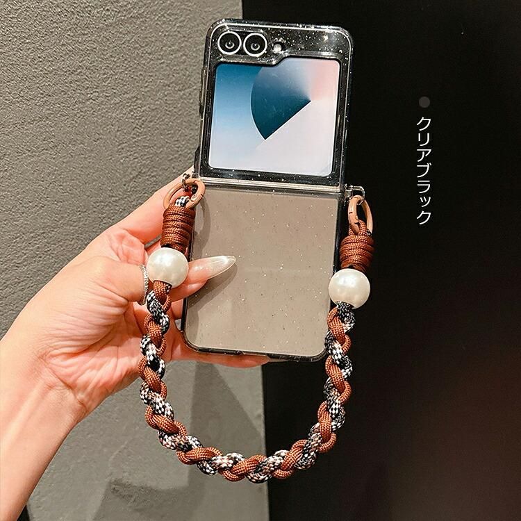 Galaxy Z Flip7/ Z Flip 6/Z Flip 5 クリア ケース /カバー 折りたたみ型 耐衝撃 クリア 透明 持ち手 ベルト ハンドストラップ 落下防止ベルト