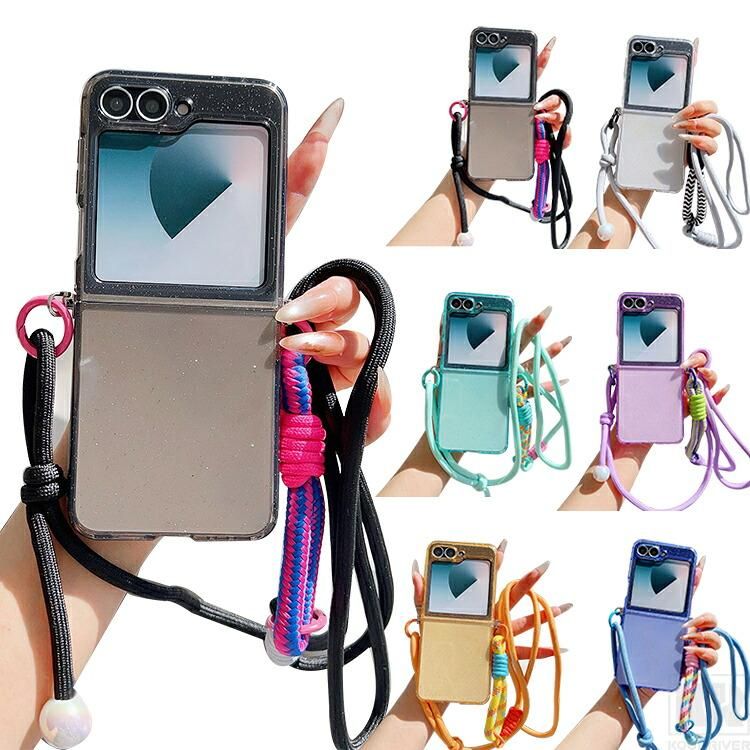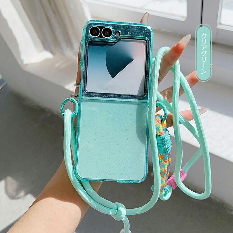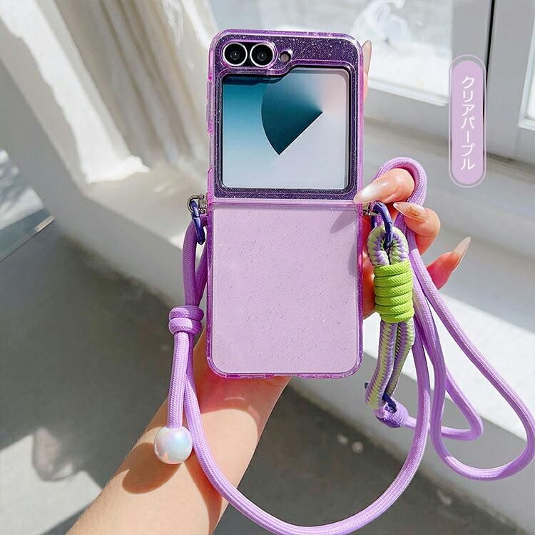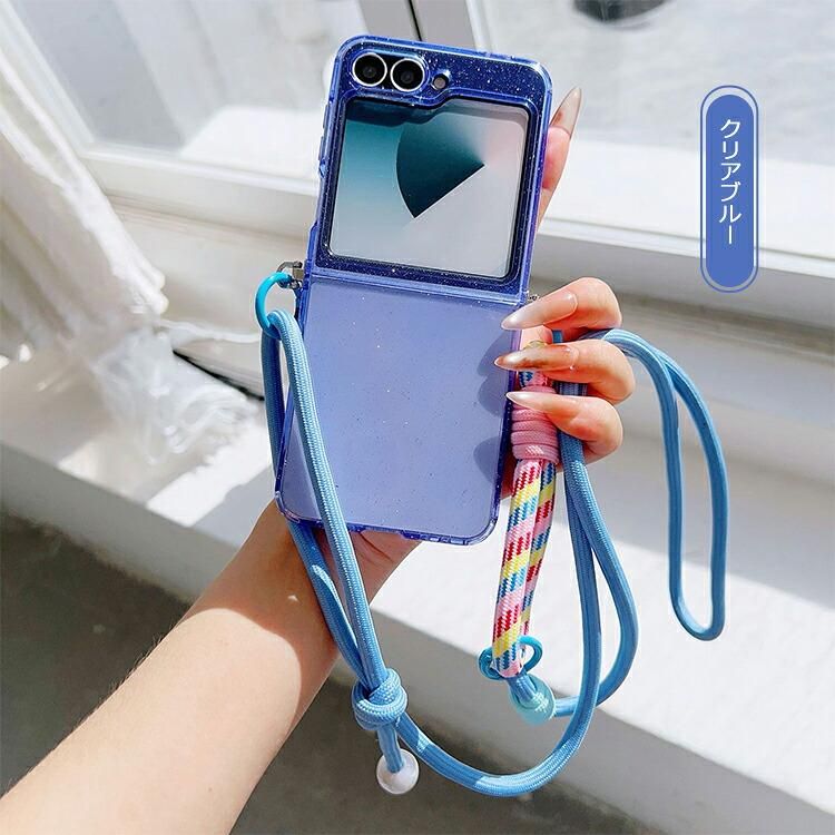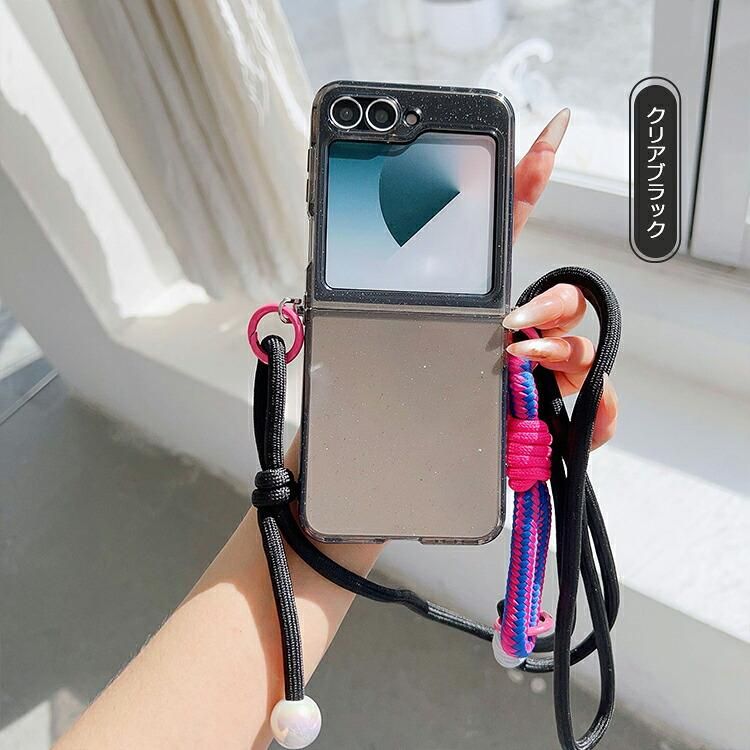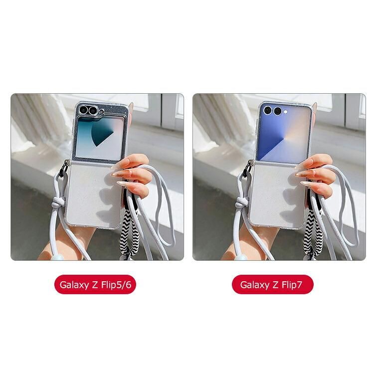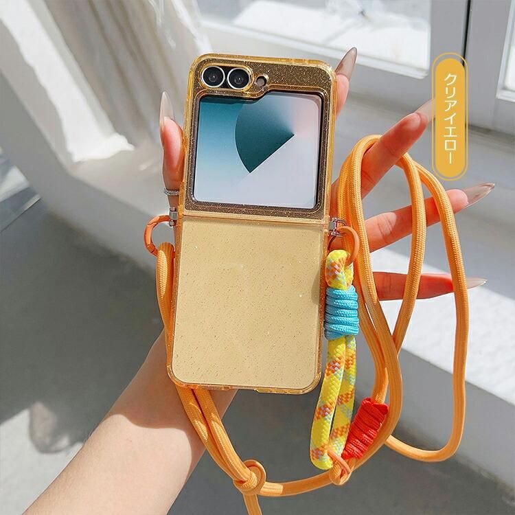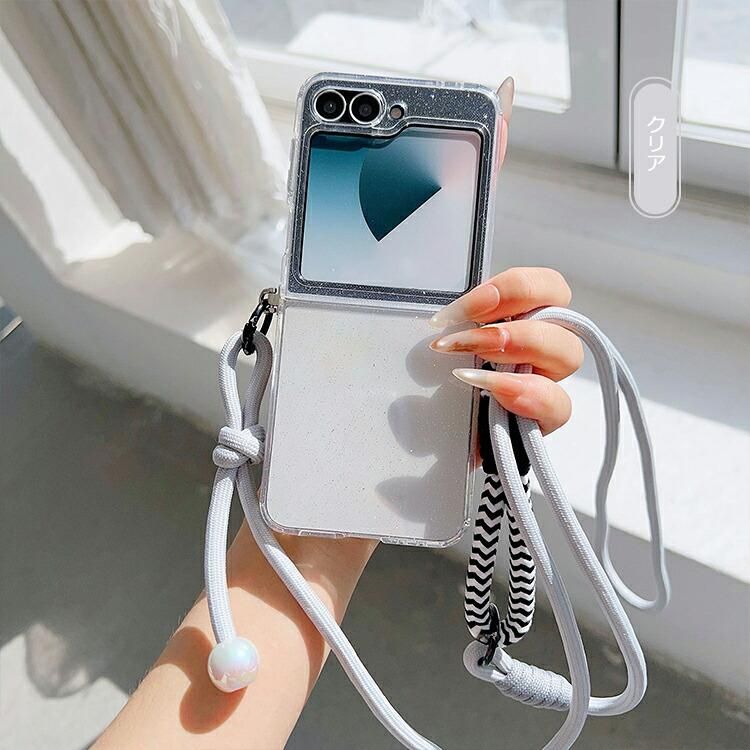 Galaxy Z Flip7/ Z Flip 6/Z Flip 5 スマホショルダー ケース /カバー 折りたたみ型 耐衝撃 クリア ショルダーストラップ 肩掛けベルト付き