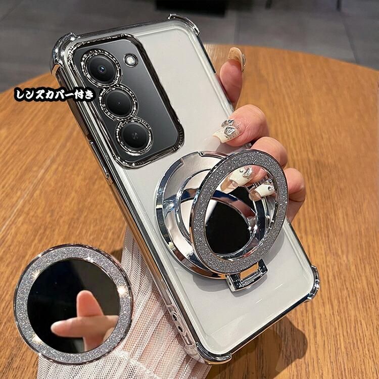 Redmi 15 5G クリアケース レンズカバー付き カバー 耐衝撃 クリア メッキ ソフトケース 分離型スマホリング付き スタンド機能 ミラー付き