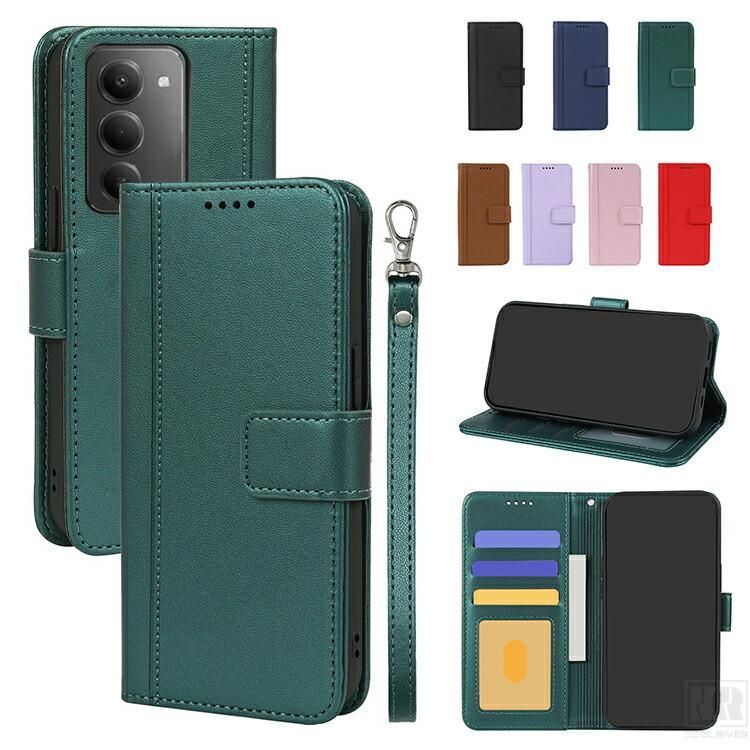 Redmi 15 5Gケース 手帳型 カバー ストラップ付き 耐衝撃 PUレザー 手帳型PUレザーケース スタンド機能 カード収納 シンプル ストラップ穴