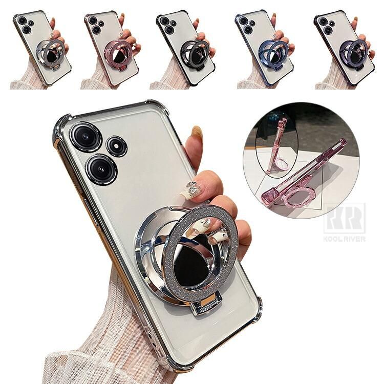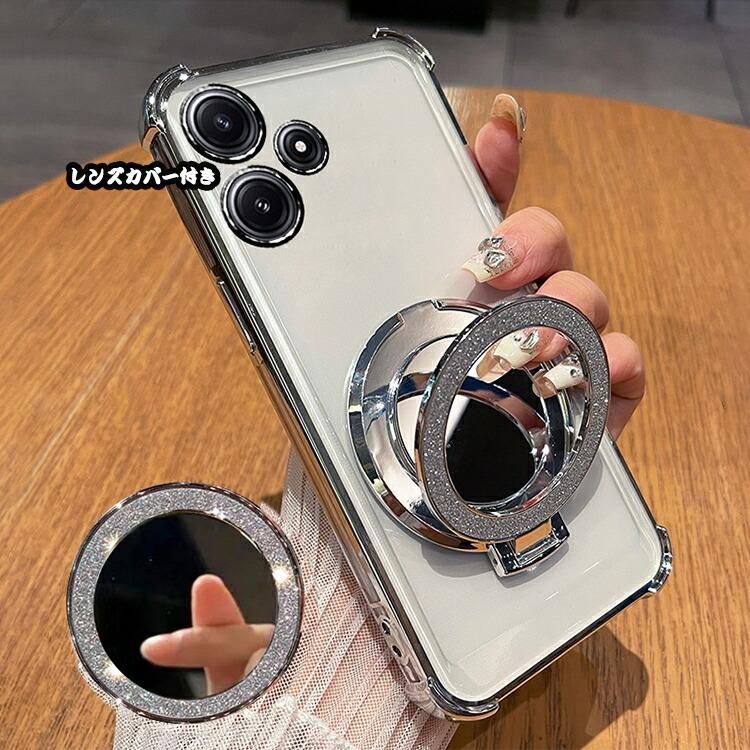 Redmi 12 5G クリア ケース Redmi Note 12R カバー レンズカバー付き クリア 透明 メッキ ソフトケース 分離型スマホリング付き スタンド機能
