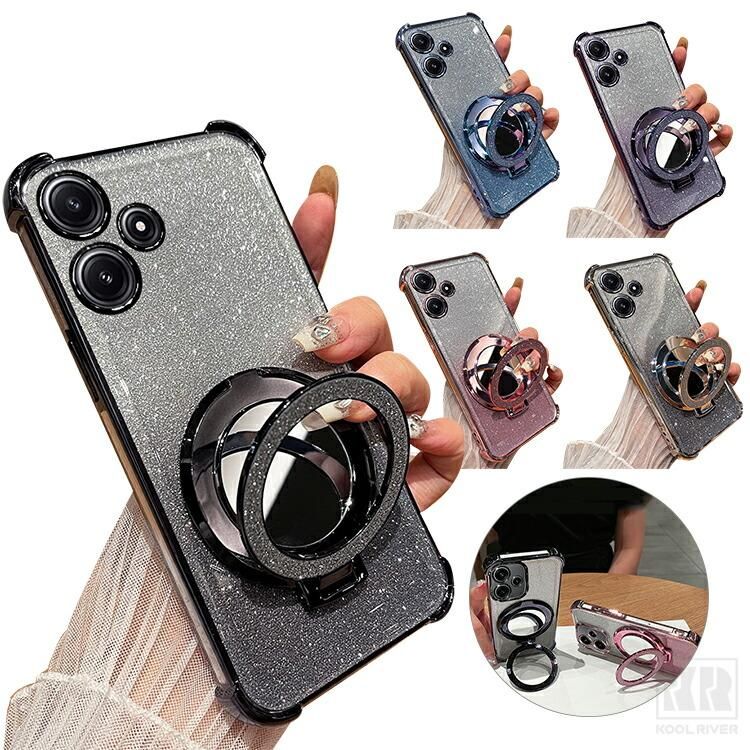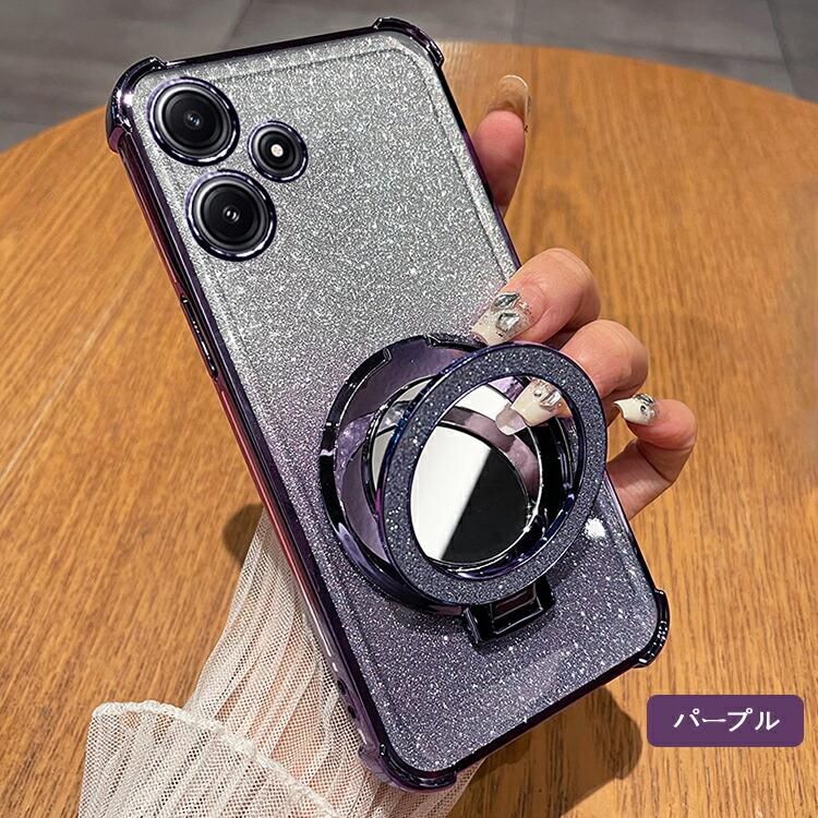 Redmi 12 5G クリア ケース Redmi Note 12R カバー レンズカバー付き クリアメッキ ソフトケース グラデーション グリッター 分離型スマホリング付き